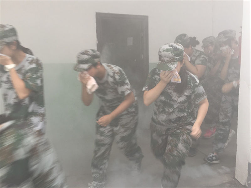 培训在疏散演练中开始,“三楼宿舍发生火灾,请同学们有序撤离”,广播内播放着疏散提示,同学们用湿毛巾捂住口鼻,弯腰迅速沿教官指示方向,穿过浓烟向安全区域撤离,十分钟的时间内,同学们按要求疏散到了安全区域,演习圆满成功。演习结束后,结合近期发生的典型火灾案例和学校火灾特点,针对日常生活中逃生自救常识,教官用通俗易懂的语言讲述了火灾的危害性,详细介绍了校园防火、灭火常识,并重点讲解了如何报警求助、如何扑救初期火灾、如何使用灭火器、发生火灾如何自救逃生等消防安全常识。