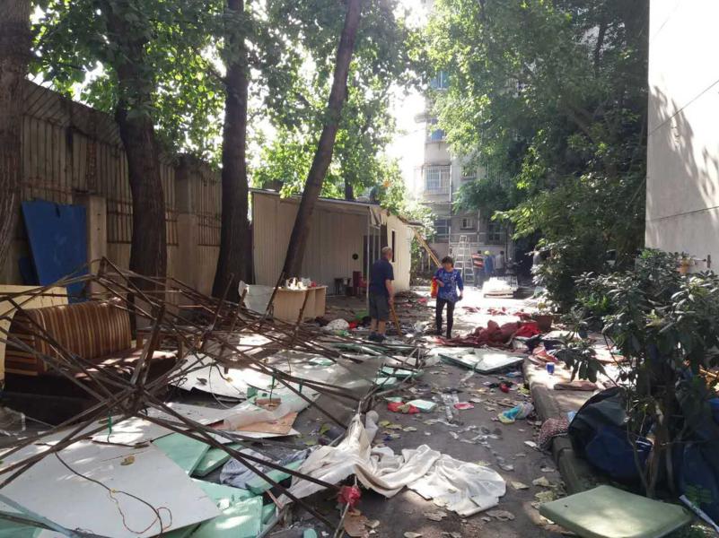 发现消防安全隐患后,民警当即与社区工作人员取得联系,一同组织板房责任人召开会议,对相关责任人进行了批评教育,对消防安全隐患的严重性进行了耐心解说,并组织板房责任人一同对蜀明东路4号院、6号院、10号院的十余处约800个平方米的违规搭建的彩钢板房进行了全部拆除。