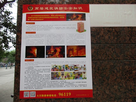“6.14”伦敦火灾造成79人死亡的惨剧,你们这里也是类似场所,伦敦火灾更是给你们敲响警钟,消防安全马虎不得,真真是要放在心上、抓在手上、做在经常”……连日来,荷花池派出所民警持续张贴在消防大队领取的高层建筑消防安全挂图,挨户走进涉及场所,细致讲解消防安全,并在显眼区域张贴了消防宣传挂图。