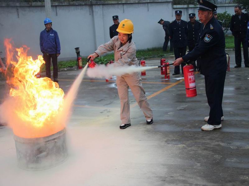 培训结束后,宣传人员用油桶高仿真火灾现场,详细地讲解了灭火器的类型、使用方法、维护保养内容,并现场进行演练。在场职工轮番上场沉着冷静地扑灭明火,针对个别人员在演练过程中发生的问题,宣传人员手把手帮助纠正,确保每位职工都能熟练掌握灭火器的使用方法。