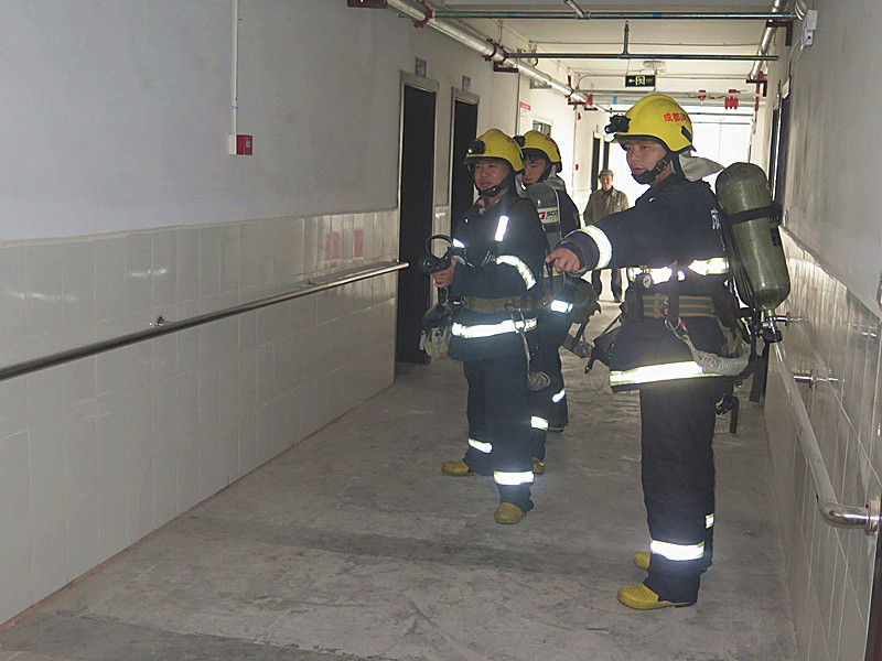 带队干部通过实地考察,假设宿舍楼二楼206宿舍起火,且火势凶猛已有外延现象,就此现象立即开展模拟化实战训练。同时,在敬老院职工的支持配合下,借此机会组织老人们开展了应急疏散演练,将实战演练与应急疏散演练紧密结合。整个演练过程井然有序,干部下令,队员执行,没有多余的动作,队员们沉着冷静,展现出了队伍过硬的业务素质与实战能力。