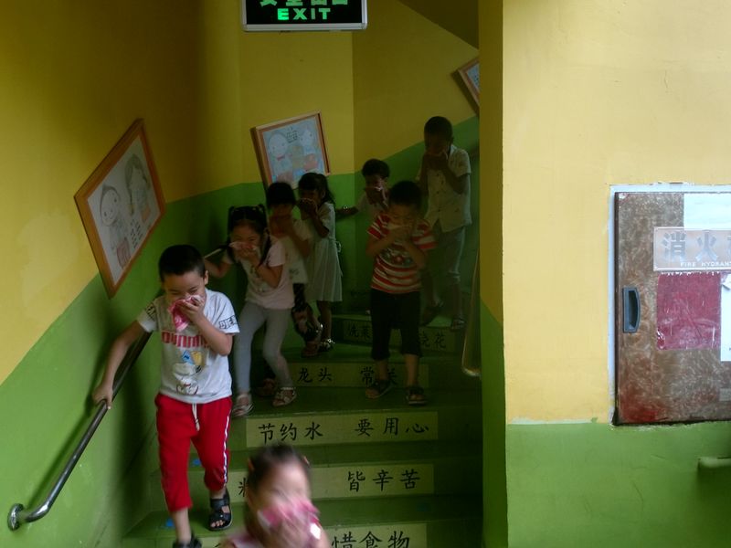 活动中,大队宣传员首先与幼儿园负责人对整个的逃生演练进行了详细的安排部署。随着一阵急促的警报声,消防疏散演练正式拉开序幕,假设学校教学楼一楼教室起火,火势迅速蔓延,幼儿园小朋友在老师们的带领下拿出毛巾捂住口鼻,沿既定逃生路线迅速有序从教学楼撤离。