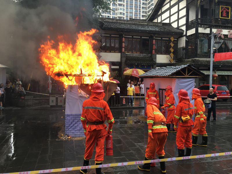 在演习前,消防官兵与“文殊坊”相关人员精心组织,让单位员工积极的参与进此次演习之中。在演习过程之中,“文殊坊”的安保人员有序的对员工进行疏散,消防官兵则对着火部位进行扑救,进一步保证参加演习人员的生命财产安全。