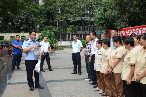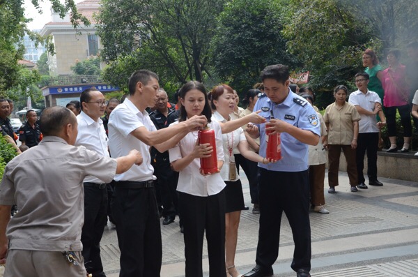 演练前,棠湖派出所消防民警就灭火器、水枪水带的使用方法向现场50余名保安、保洁进行了现场演示,深入讲解了火情研判和疏散逃生的相关知识,并强调小区物业管理人员是发现火情的第一责任人,遇到火情要学会边处置边报告,防范于未然,全力维护小区安全。