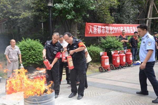 四川新闻网成都9月25日讯(杨雨 记者 张静)为全力做好夏季火灾防控工作,大力普及消防安全业务技能知识,推进消防安全宣传教育进社区进程,为党的十九大胜利召开营造良好的消防安全环境,近日,双流区东升街道、棠湖派出所、普贤社区在普贤社区人居都市阳光小区联合开展了消防演练培训,人居都市阳光小区居民、保安、保洁共计80余人参与演练。