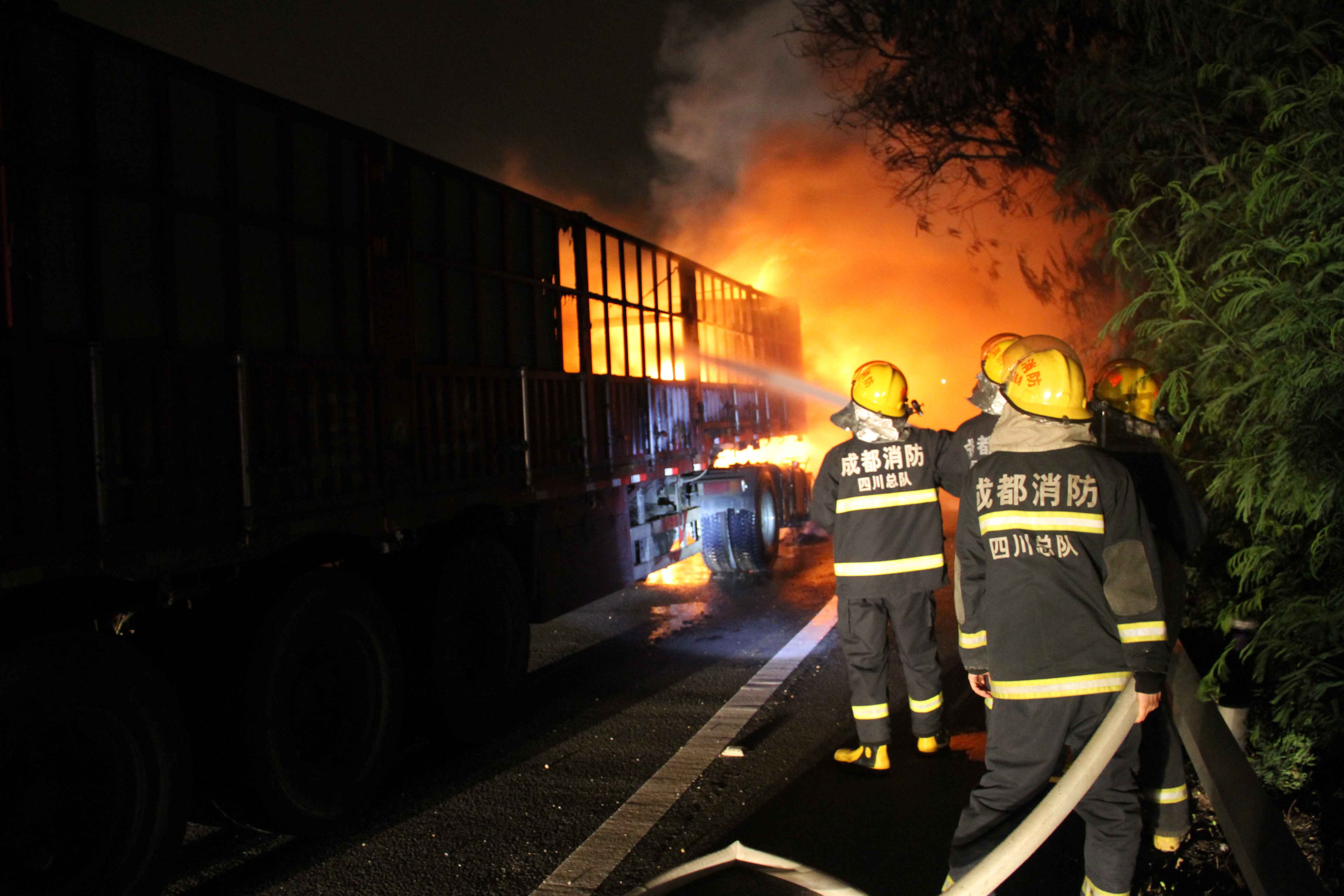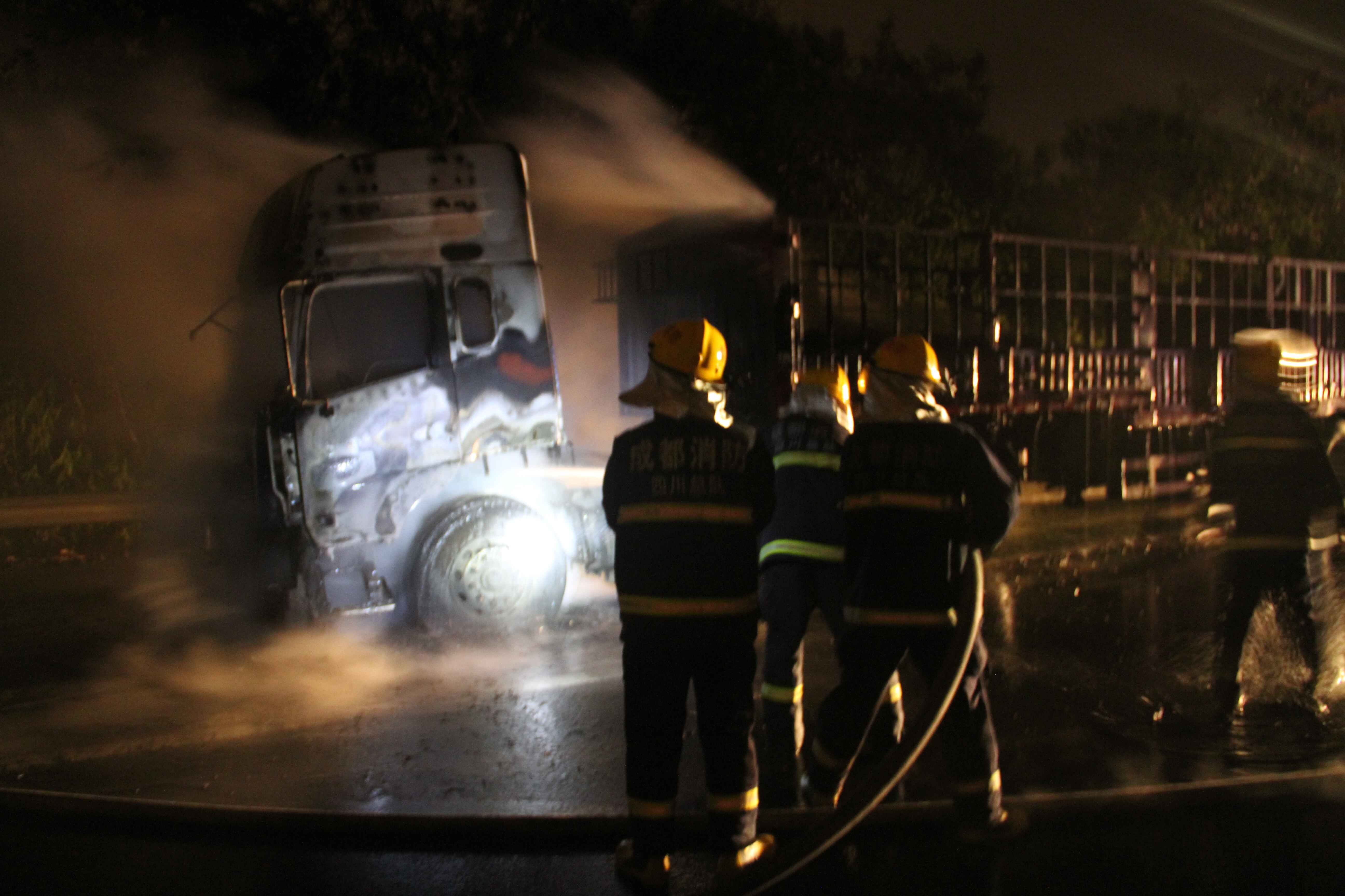 四川新闻网成都8月23日讯(记者 张静)8月23日凌晨02时10分,双流区政府西航港专职消防队接到指挥中心调度称:绕城高速上接待寺往白家方向3公里处,一辆货车起火。接到命令后,西航港专职消防队立即出动3辆车、16名消防员赶赴现场进行处置。