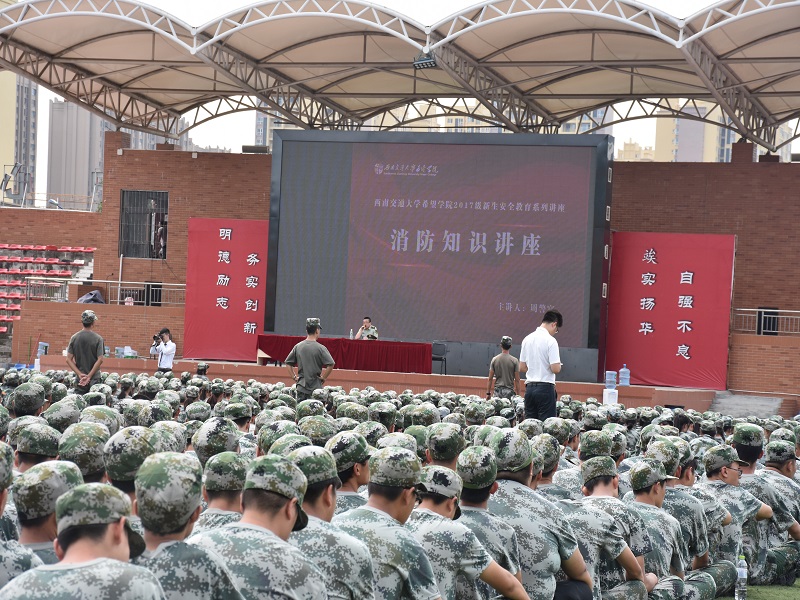 四川新闻网成都9月22日讯(王光玉 记者 张静)为进一步贯彻落实消防安全教育工作,提高刚入学新生的消防安全意识,增加学生消防安全理论知识,9月21日,金堂公安消防大队利用开学之际,走进西南交通大学希望学院,为正在军训的五千名学生开展消防安全知识讲座。