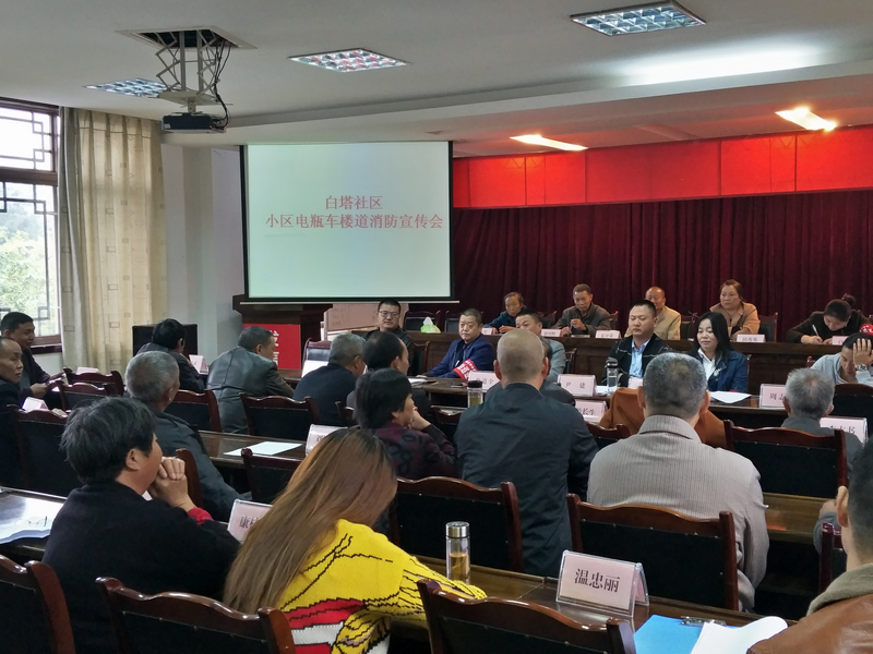 会上,白塔社区消防安全宣传大使首先播放了电动车火灾启示录,并通报了近年来国内由电瓶车引发的火灾事故,提醒参会人员要高度重视电瓶车消防安全问题,普及了电瓶车发生火灾的原因和危害、电瓶车火灾的防范措施和给电瓶车充电应当注意的事项等消防安全知识。最后,白塔社区消防安全宣传大使强调道:“应将电瓶车放在室外安全地点,禁止停放在楼梯间、疏散通道、安全出口等处,充电也应当在通风散热条件较好的室外进行,并且周围不得放置可燃物,充电时间也不宜过长。”