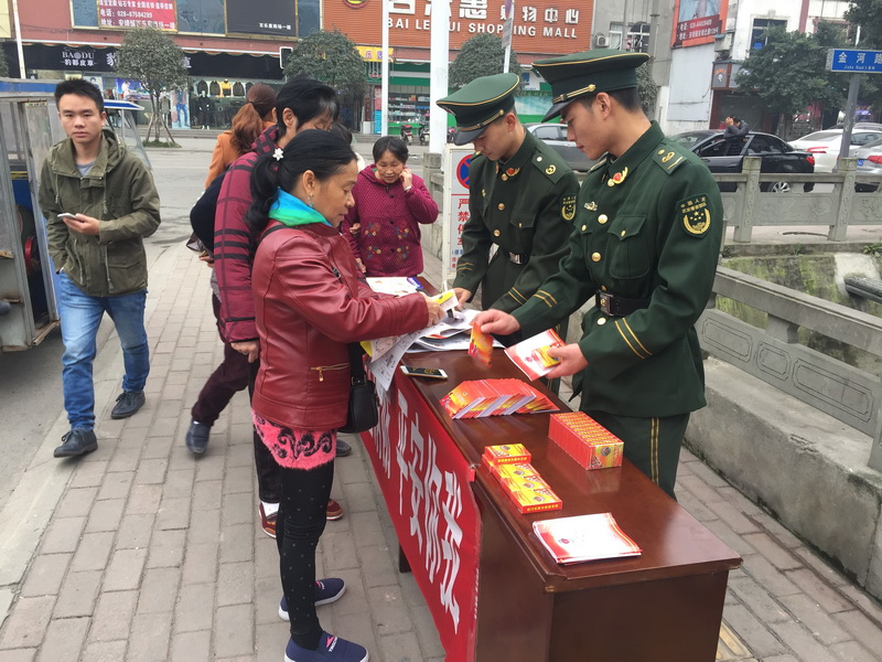 开展大型宣传活动。消防大队积极组织中队在辖区人员密集的郫筒老百姓花园、安靖百乐惠广场、犀浦泯江广场摆放“消防常识二十条”展板,发放消防宣传手册、挂图等5000余份和火灾案例光碟500余份,发动群众参与现场体验活动,并解答群众现场提问,切实普及了消防安全常识。