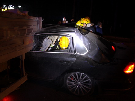侦察完毕后,指挥员下达作战命令,一方面,泡沫水罐消防车出一只泡沫枪,预防汽车漏油,防止轿车着火;另一方面,指派一名经验丰富的班长进入到轿车后排座,移动驾驶室座椅。经过多次尝试后,驾驶室座椅往后移动了一些,为救援腾出了空间。随后,指挥员与交警商量,尝试移动前面的货车,先将两车分离,再营救被困人员。但由于两车相嵌太牢,货车前进的时候,轿车同时被拖拽前行,分离行动失败。经过慎重考虑,指挥员决定,先将轿车前窗进行破拆,扩大救援空间,再对被困人员进行施救。此时,轿车前窗玻璃已经破碎,玻璃渣随处可见,救援官兵先将轿车前窗拆下,然后趴在方向盘上,将被困人员腿部和脚部移出驾驶室,再从副驾驶室将被困人员抬出,经过约5分钟的救援,被困司机被成功救出,但经120医务人员检查,已无生命特征。具体事故原因,交警正在进一步调查当中。