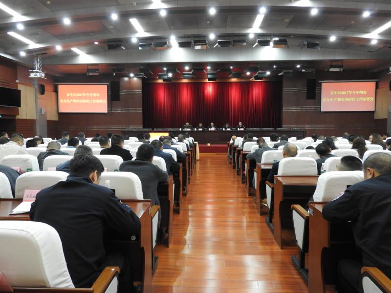 四川新闻网成都11月27日讯(记者 张静)为认真贯彻落实党的十九大精神和公安部、省政府、市政府今冬明春火灾防控工作电视电话会议精神,动员全区各部门、各街道统一思想、迅速开展冬春火灾防控工作,近日,金牛区组织召开今冬明春火灾防控工作动员部署会。周国军副区长、任继斌副区长出席会议,区政府办、目督办、安监局、消防大队等安委会成员单位以及各街道办事处、社区、公安派出所主要负责人等近百人参加了会议。