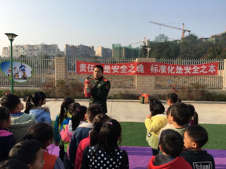 活动中,消防官兵首先采取通俗易懂、幼儿园小朋友能够接受的问答方式,面对面向“祖国的花朵”、“我们的未来”学龄前幼儿宣传讲解了不玩火、遇到火灾怎么保护自己、如何逃生等消防安全知识,告诉小朋友们消防器材的种类、做什么用的。随后,消防官兵又向学校教职工展示了各种常见灭火器材及其使用方法,对学校微型消防站装备器材、学校自动喷淋灭火系统、自动报警系统的运行和正确使用进行了培训和教学及示范,并现场为幼儿园教职工解答消防安全问题。最后,消防大队组织学校教职工开展了灭火器灭火现场体验,让每一名教职工掌握灭火器使用方法,熟悉初期火灾的应急处置程序。
