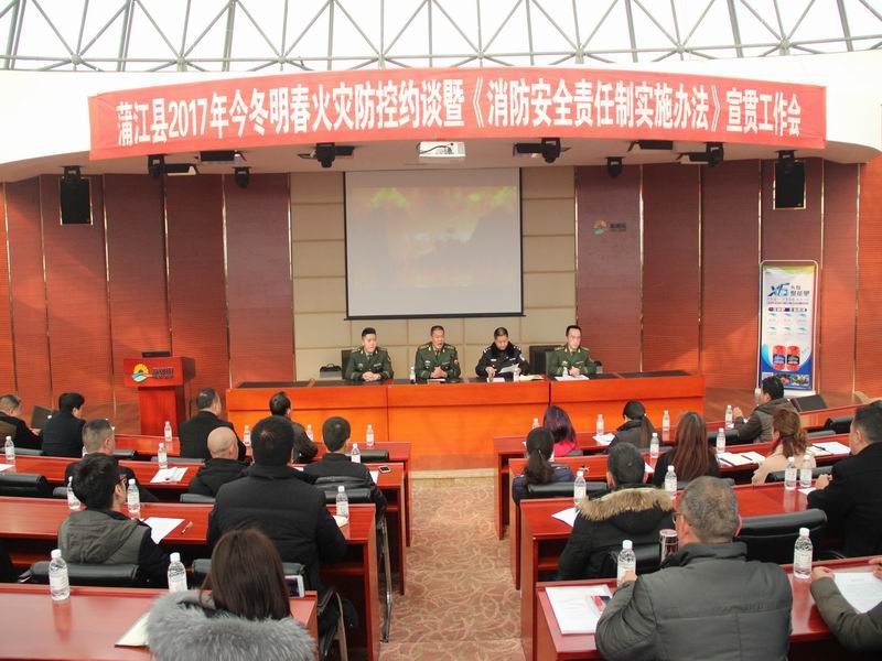 四川新闻网成都12月28日讯(记者 张静)为深入推进今冬明春消防安全工作,全面排查火灾隐患,广泛开展消防宣传教育,形成多方参与、社会联动的消防工作格局,坚决遏制重特大火灾尤其是群死群伤火灾事故发生。12月27日下午,蒲江县组织召开今冬明春火灾防控约谈暨《消防安全责任制实施办法》宣贯工作会。蒲江县公安局常务副局长、县消安委副主任杜华江,全县65家重点单位、在建工地负责人共计80余人参加了会议。