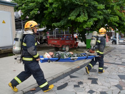 随着一阵刺耳的警报声响起,消防演练正式开始,校园宿舍楼三楼一寝室突发大火,火势不断迅速蔓延,顿时烟雾弥漫,学校广播立即传出“楼内发生火灾,请同学们不要惊慌,在老师的指引下有序疏散”的声音。火灾发生后,正在休息的学生在老师的引导下,用湿毛巾、衣物等捂住口鼻,俯着身子紧张有序地从安全出口快速地疏散到安全地带,并在学校操场上进行集结,不到6分钟,千余名学生全部被转移到安全地带。随后,中队官兵根据现场情况,分为灭火组和救援组,灭火组出一支水枪对着火部位展开进攻,救援组利用担架解救被困人员,经过10分钟的战斗,大火被彻底扑灭,演习圆满结束。