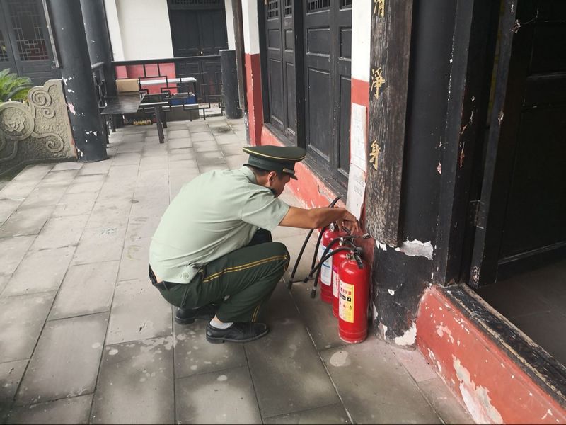 检查中,成华消防大队执法干警针对文物古建筑场所多为木质结构,耐火等级低、消防基础设施差等特点,重点对场所内消防安全责任制是否落实;消防安全管理制度是否完善;重点部位的消防设施、灭火器材是否配备到位、是否完整好用;有无违规用火、用电现象等情况进行了实地检查。同时,消防监督人员现场抽查了各寺庙内工作人员是否掌握基本灭火常识、对消防安全基本常识进行了随机提问,并针对检查中发现的各种消防安全隐患提出了合理的整改意见,最后,大队执法干警向各文物古建筑场所消防负责人分析了近期发生的文物古建筑火灾事故,通过深刻直观的火灾案例,告诫单位提高消防安全意识的重要性和必要性。