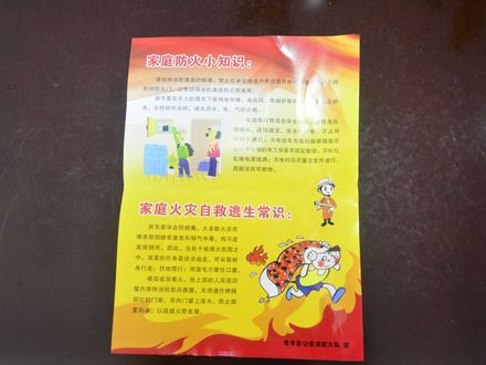 宣传资料主要对家庭防火小知识、家庭火灾自救逃生常识、居民小区火灾案例情况进行了介绍。同时,还介绍了如何报警、怎样使用灭火器、室内消火栓使用方法、高层建筑自救逃生要领、家庭防火、火灾逃生常识、日常防火巡查事项等简单实用的消防安全知识。